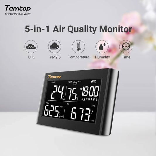 Temtop CO2 Air Quality Monitor PM2.5 Thermometer Data Export P20C - Black