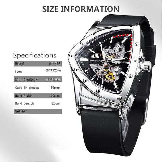 Skeleton Watches for Men, Automatic Mechanical Watch with Triangle Dial, Luminous Self Winding Watches Stainless Steel Bracelet or Soft Silicone Strap