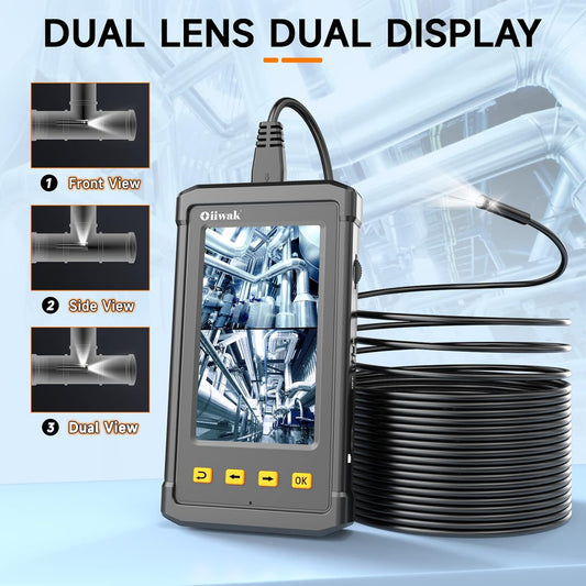 Dual Lens Endoscope for Industrial Sewer Pipe Drain Plumbing Inspection Camera Snake with Light IP68 Waterproof(15m)
