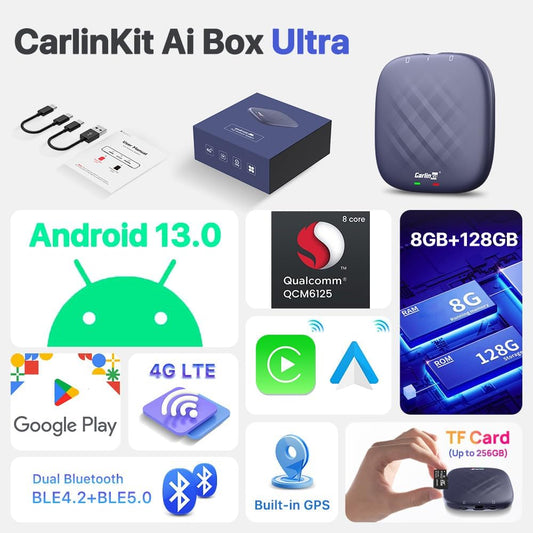 CarlinKit Android 13.0 CarPlay Ai Box Ultra, 8GB+128GB, Snapdragon QCM 6125, 33% Performance Increase, Support Wireless CarPlay/Android Auto, Built-in Google Play Store